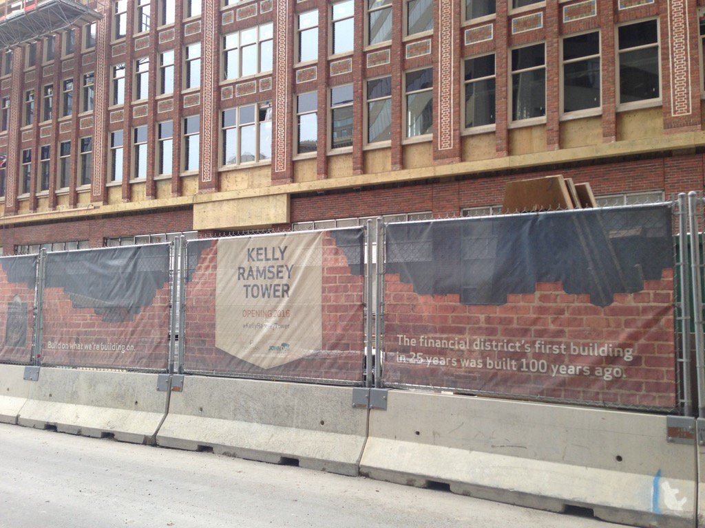 The old Kelly Ramsey Building was taken down, brick by brick, each one numbered and put into storage. The bricks that could be salvaged would later make up the new tower’s second to fourth floors. However, a lot of the original brick was not salvageable due to the fire damage.