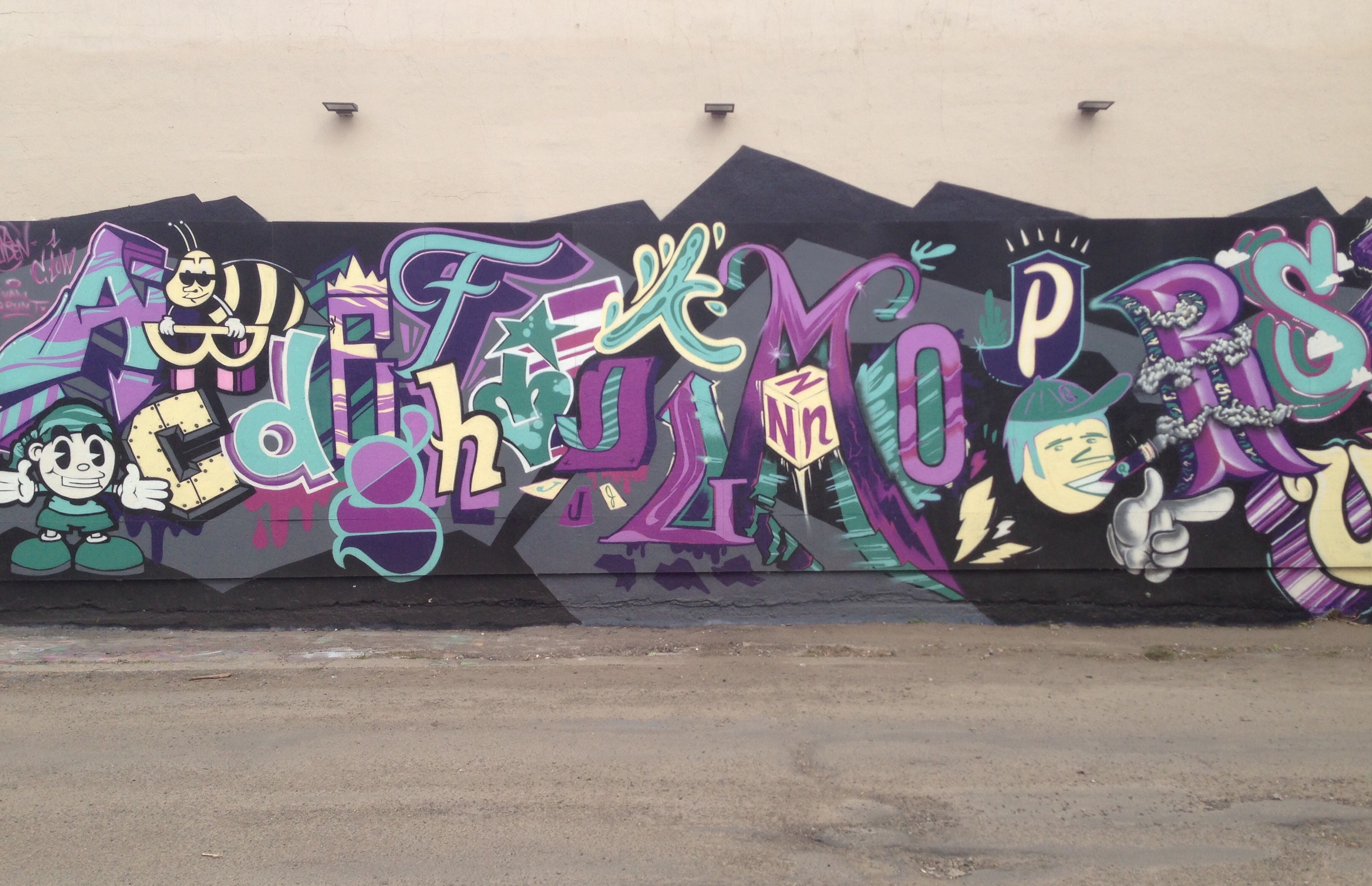 The first of many murals has already been completed on the back of the Tirecraft on Whyte Avenue. It features a creative alphabet and was designed by three local artists, A.J.A Louden, Clayton Lowe and Evan Brunt.