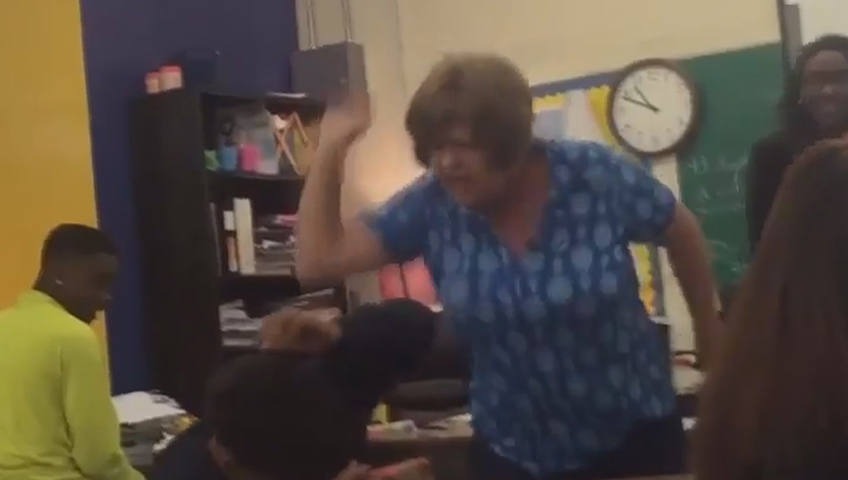 BEAUMONT, Texas (AP) — A high school teacher in southeast Texas has been arrested on an assault charge after a video surfaced online showing her repeatedly striking a student in her class.