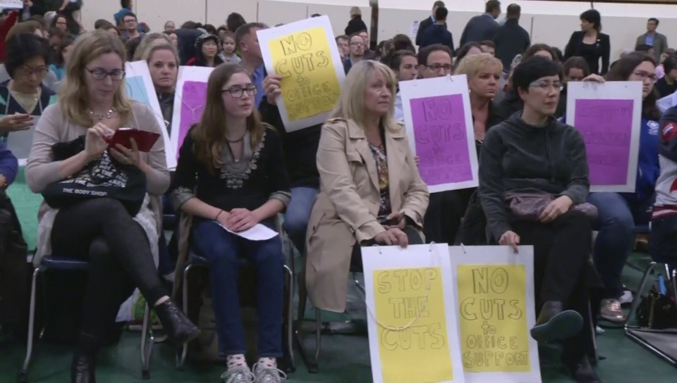 More than 30 delegations addressed the board at Vancouver Technical Secondary Tuesday on the first evening of public consultations about the proposed school budget cuts. Students and other members of the community also held a rally outside the school prior to the event.