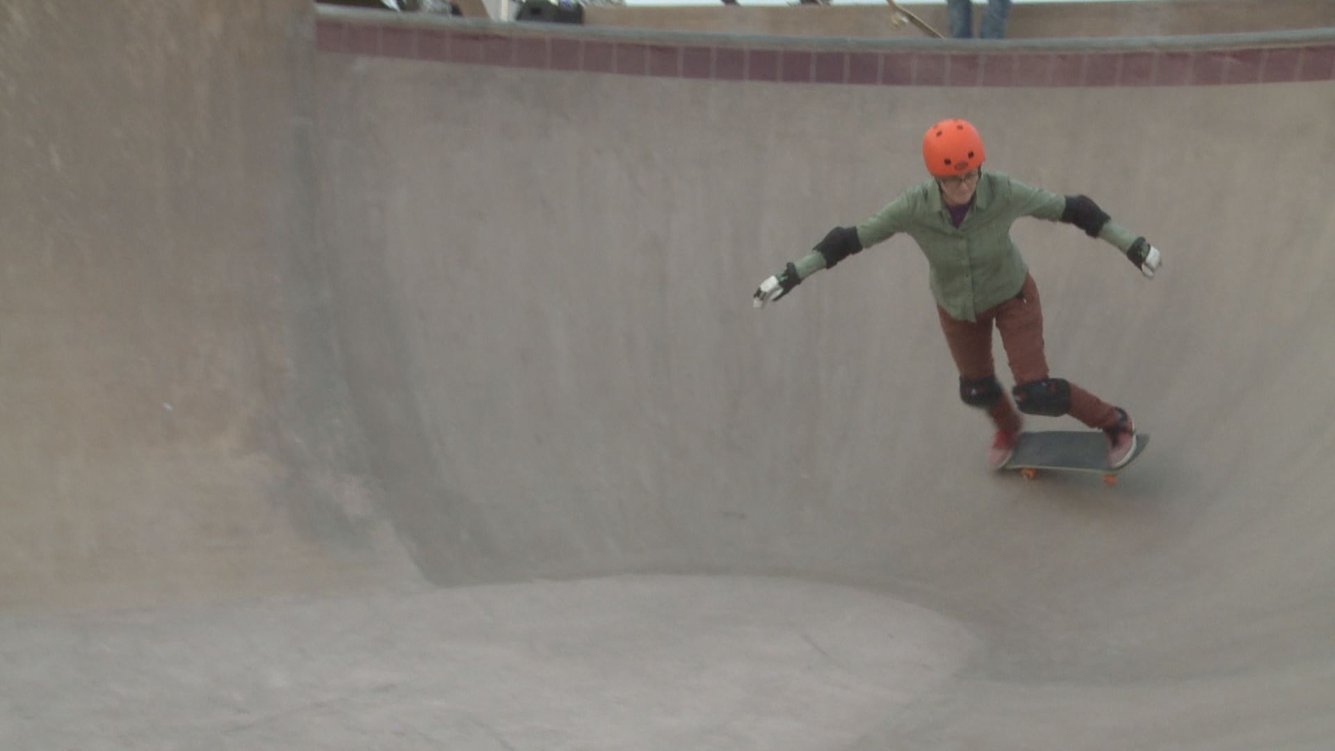 “Everybody is at a different level and everybody is here cheering each other on, helping each other out, motivating each other,” Jacobs said. She held hands with Jackson and other girls, swinging them back and forth on their boards in an upper bowl at Huntington Hills Skatepark.