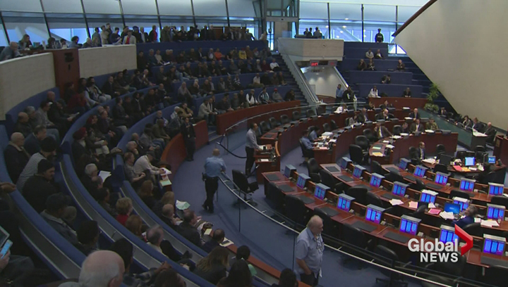 So many people registered to speak that the meeting had to be moved to council chambers to accommodate the audience.