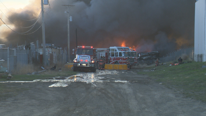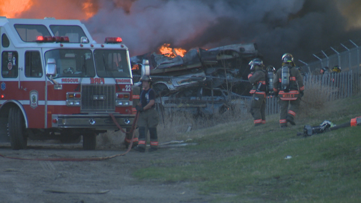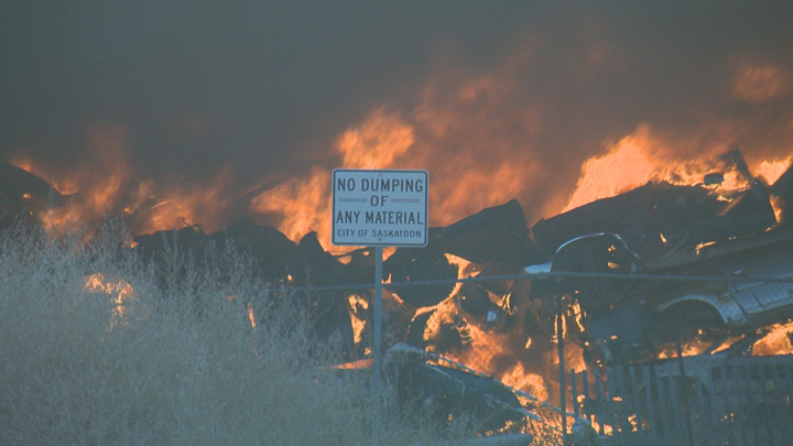 SASKATOON – A large industrial fire at an auto wrecking yard in Saskatoon took firefighters almost six hours to contain. Crews were called to 14th Street West and Avenue P South around 5:30 p.m. CT.