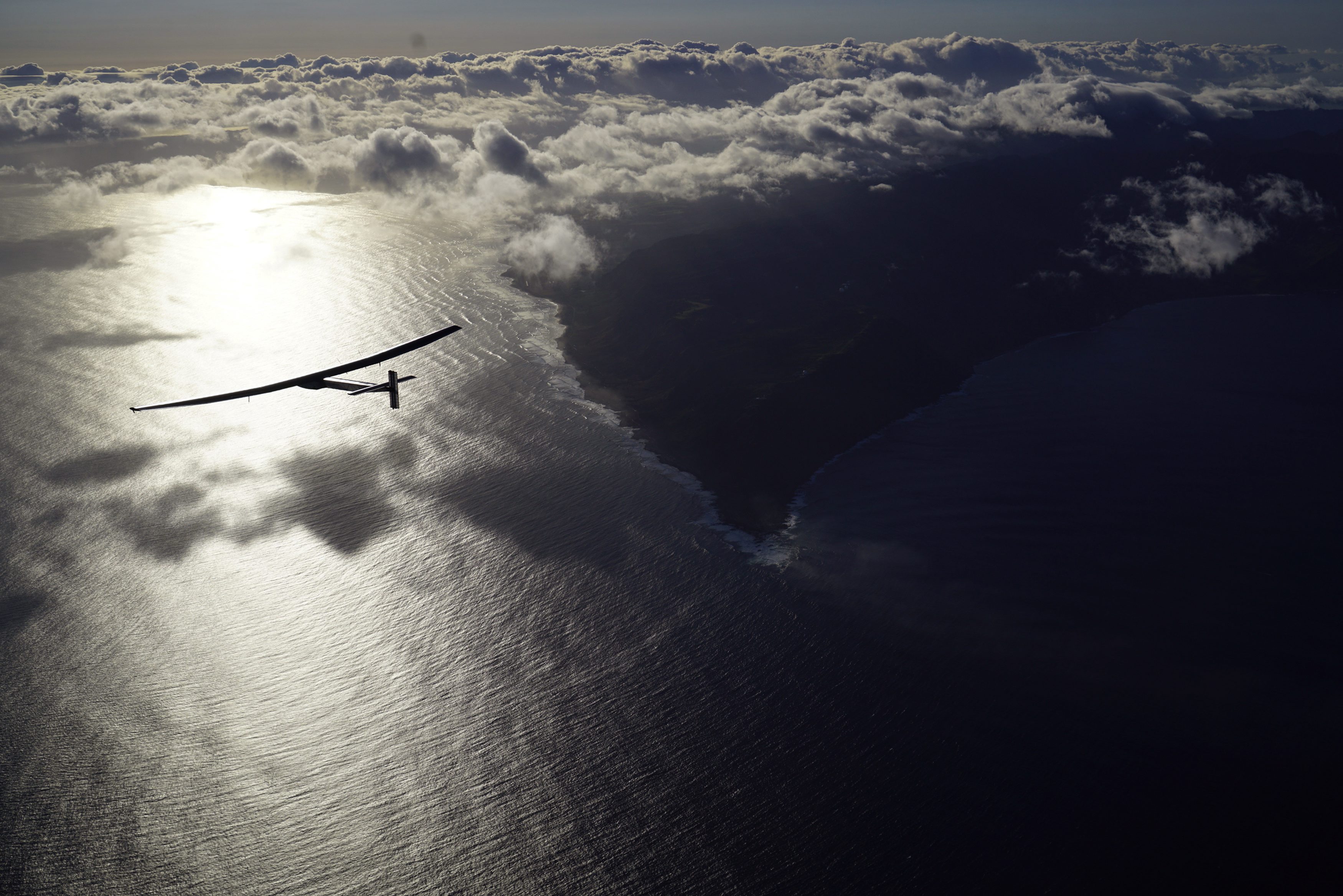 At one point the plane was passed by a Hawaiian Air jet whose passengers caught a glimpse of the Solar Impulse 2 before the powerful airliner left the slow-moving aircraft behind.