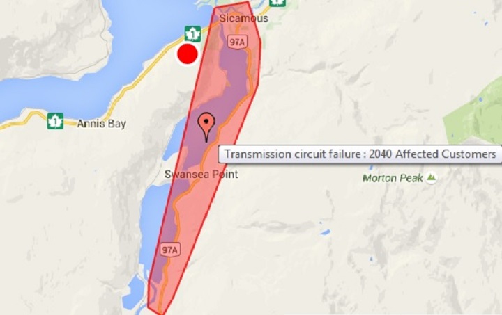 Update: Power has been restored to thousands of BC Hydro customers in the Sicamous and Malakwa areas after a three and a half hour outage.