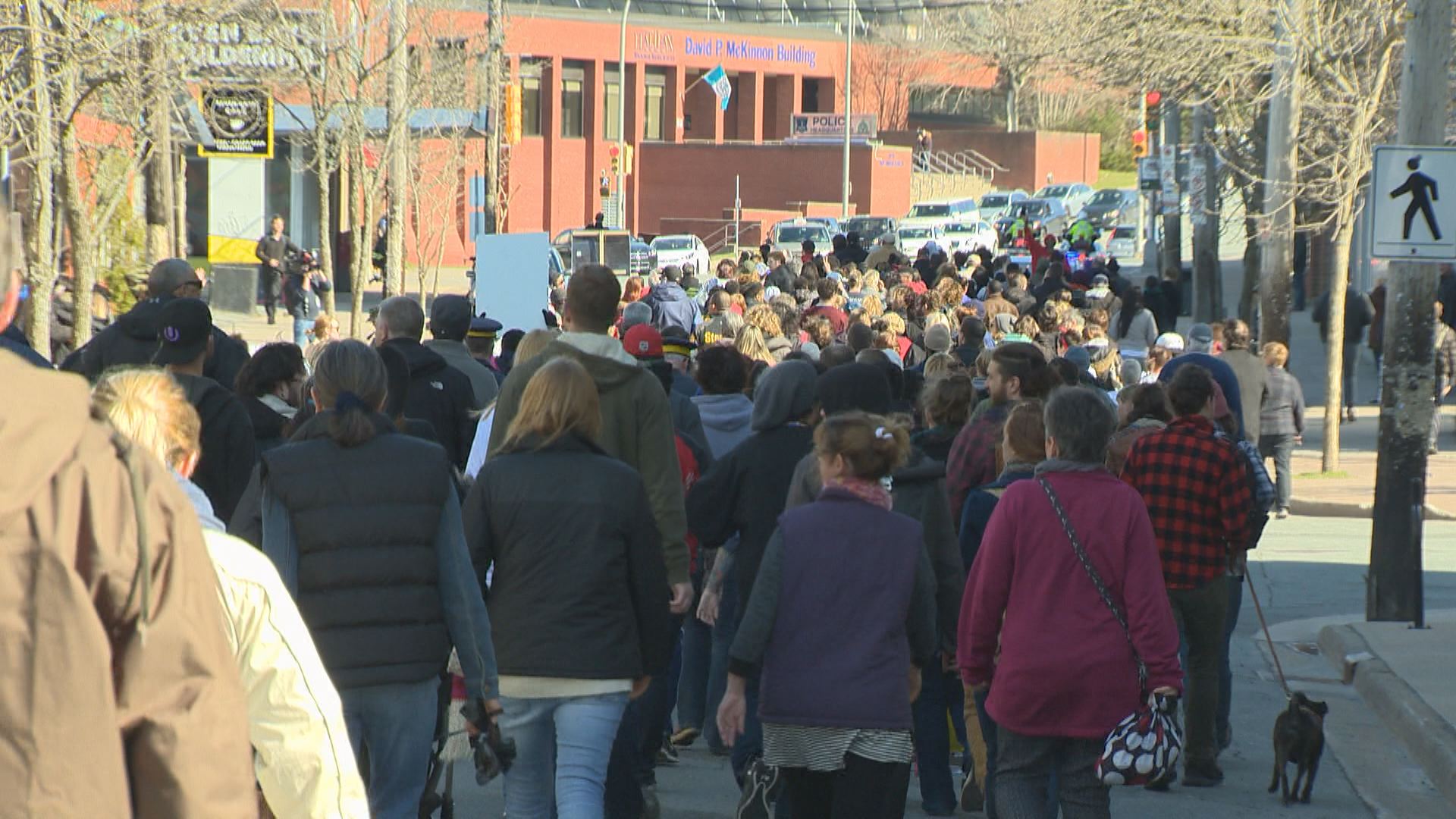 The march started on Novalea Drive at Duffus Street at about 4 p.m., then continued on Gottingen Street, ending at Grand Parade where several speakers, including Halifax Mayor Mike Savage, addressed the crowd.