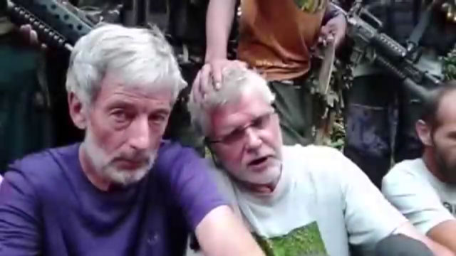 Ridsdel and Hall appear in a video, delivering messages as masked militants point guns at them. Ridsdel is held sitting on the ground by one of the captors throughout the video, with a knife pointed at his head.