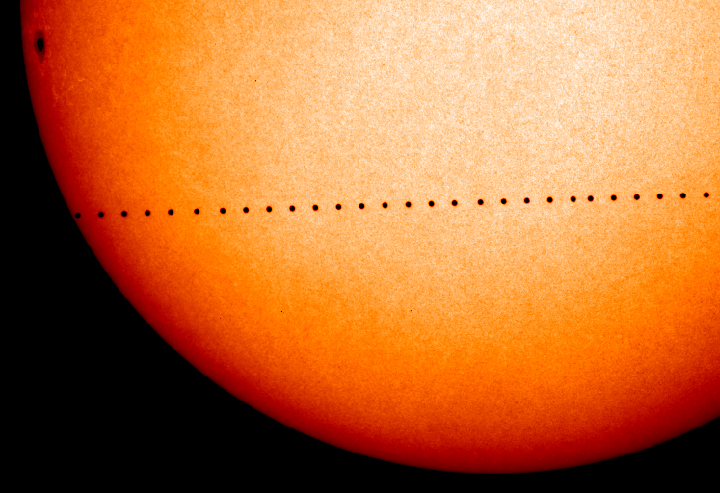 While transits of Venus are quite rare (they occur once every eight years and then don’t occur for another 105), that’s not the case for Mercury. There are about 13 transits every 100 years for the tiny planet. The last time Mercury dotted the sun was in 2006; the next time will be be in 2019.