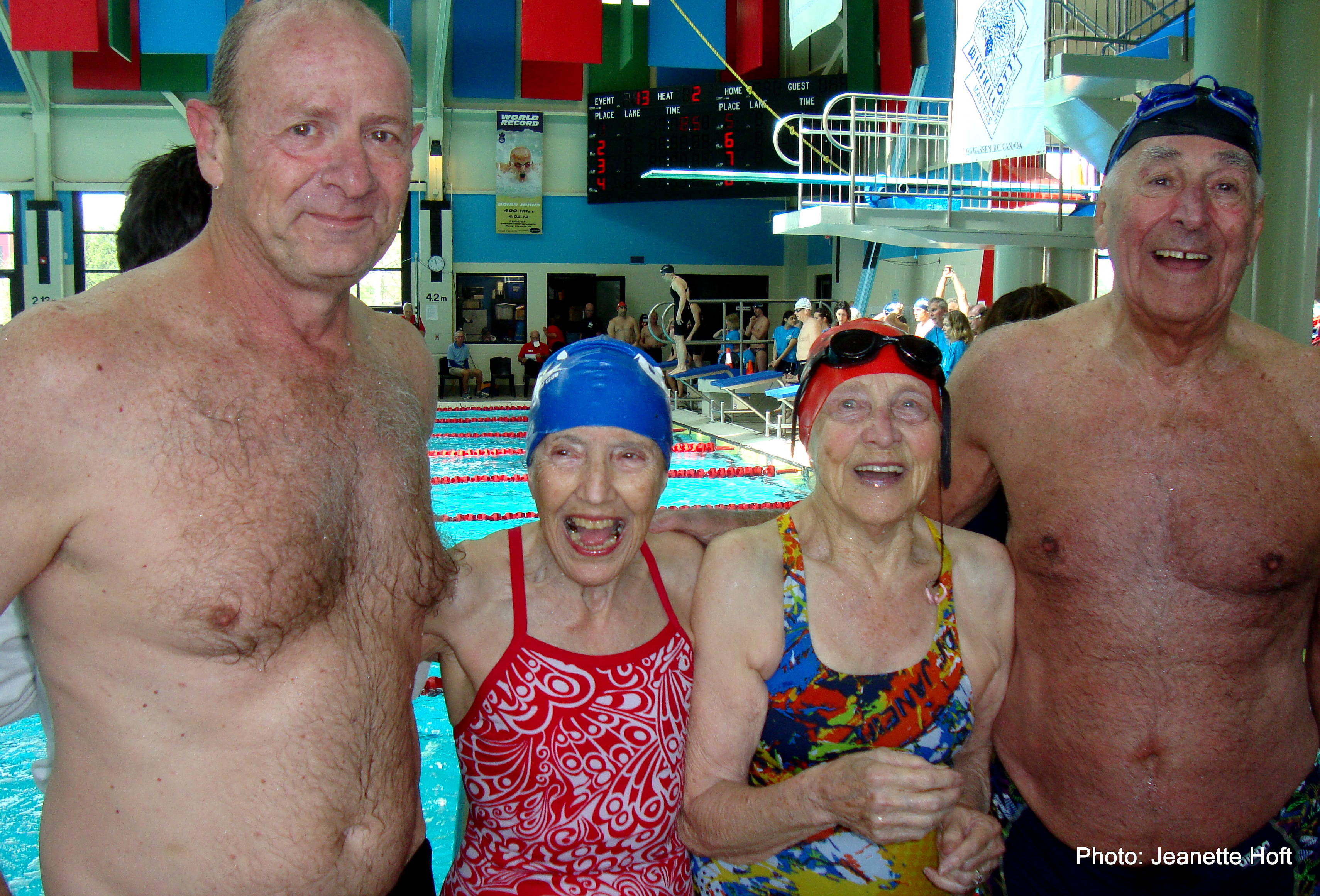 Ranging in age from 61 to 92, the mixed medley team of Betty Brussel, Conny Stamhuis, Ross Carviel and Tony Hoft finished with a time of 3:43.41 to beat a national record.