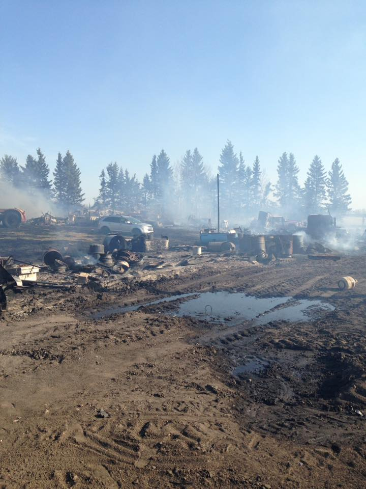 Just over an hour later, crews were called to the second fire about six kilometres east of Northside. A 40 acre grass fire had consumed over 20 vehicles, farm implements and scrap metal and was threatening a nearby home.