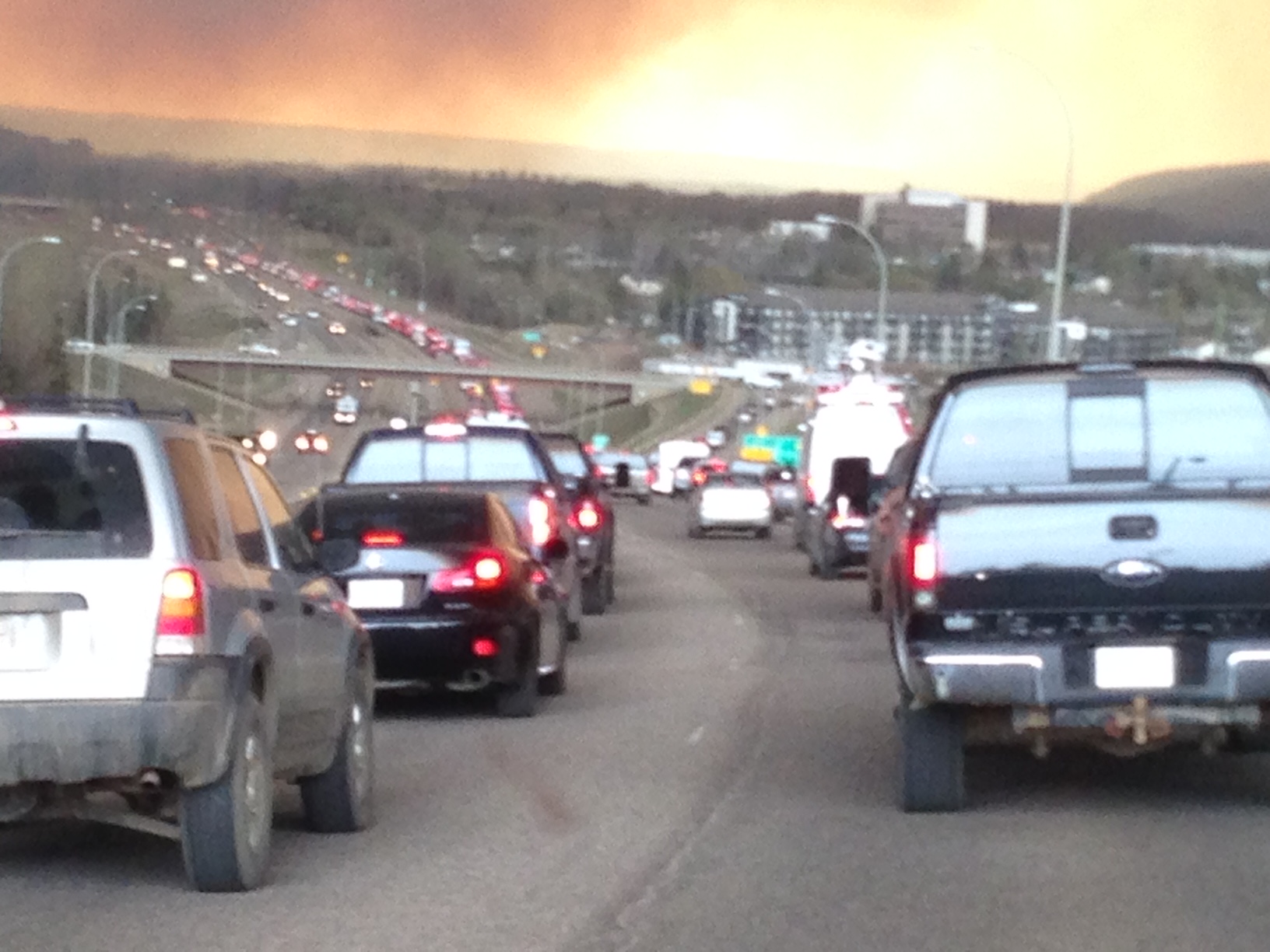 “For probably 40 miles its just endless people parked on the side of the road, they were out of gas and it was as far as they could get,” he said. “This morning it’s still the same thing…bumper to bumper for three hours outside of Fort Mac.”