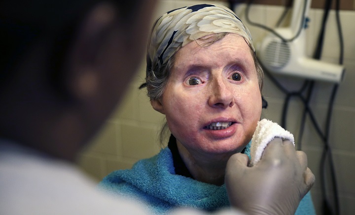 She later received new facial features taken from a dead woman. She also underwent a double hand transplant, but it failed when her body rejected the tissue.