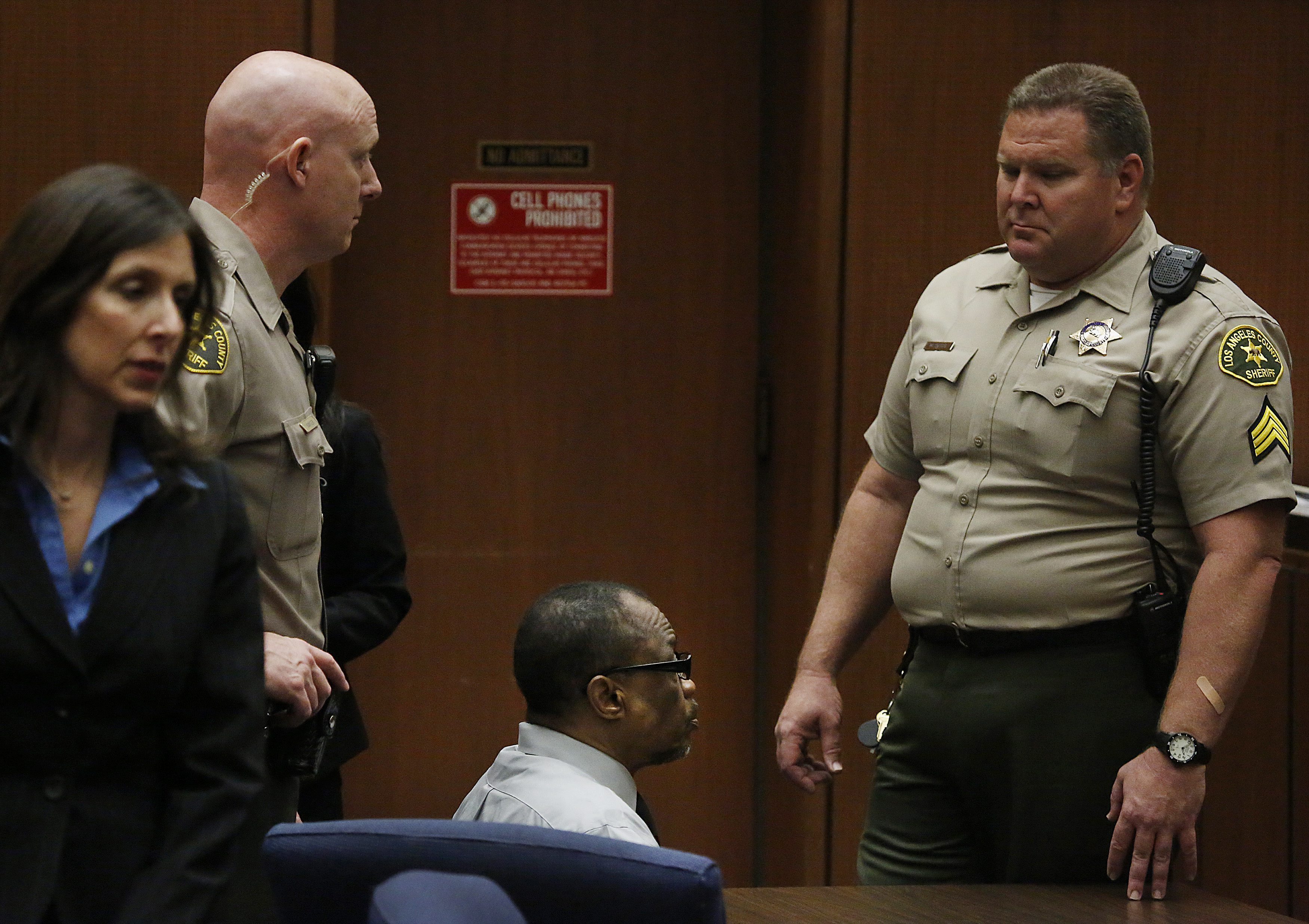 Lonnie Franklin Jr., center, sits in count in Los Angeles, Thursday, May 5, 2016. The former trash collector in Los Angeles was convicted Thursday of 10 "Grim Sleeper" serial killings that spanned two decades and targeted vulnerable young black women in the inner city. Barbara Davidson/Los Angeles Times via AP, Pool