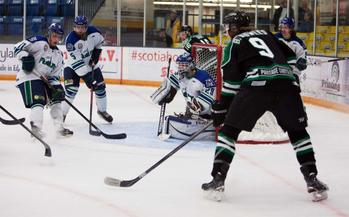 The 2015 RBC Cup champion Terriers defeated the Mustangs 3-2 in double overtime. Nick Henry scored midway through the second overtime period to propel the Terriers into the second qualification game. Brad Bowles and Chase Brakel also scored for Portage.