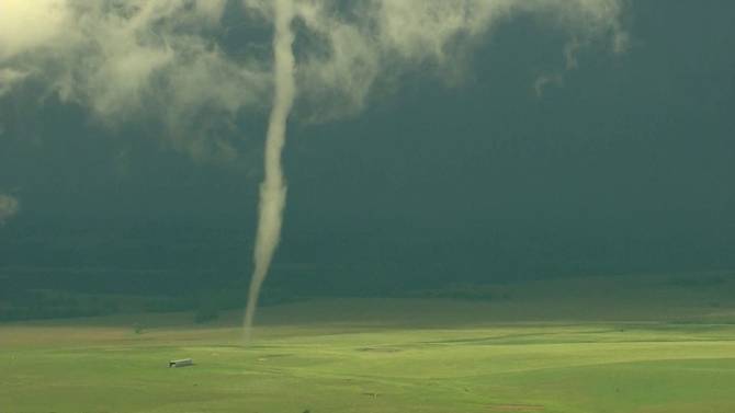 The twister was among a number of violent storms that raked the Plains on Monday. The Storm Prediction Center said portions of the Plains and the Ozarks faced a “substantial tornado risk” into Monday night.