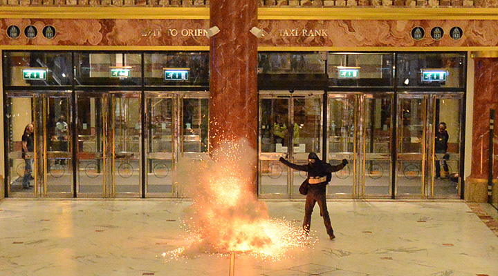 Volunteers – equipped with ear defenders and safety glasses – dropped to the floor, some of them with bloody mock injuries.