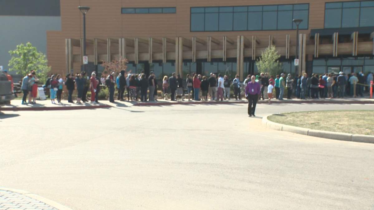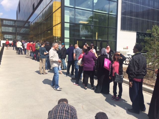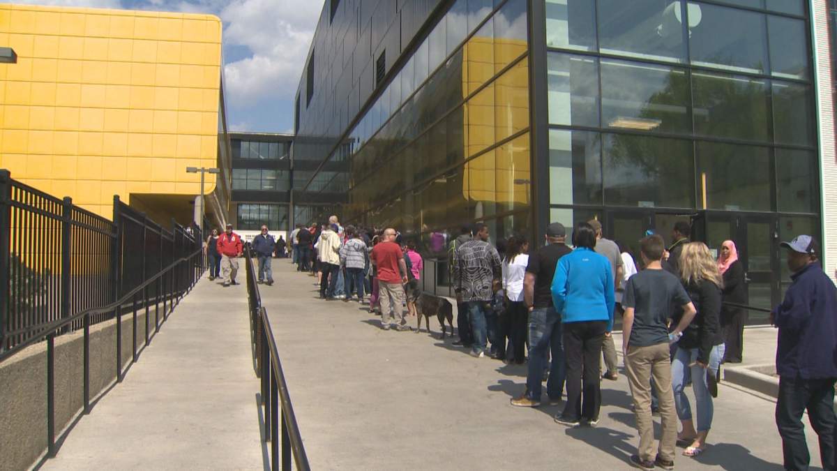 In Calgary, there were huge lineups at McMahon Stadium. In Lac La Biche, people waited in lines outside the Bold Centre.
