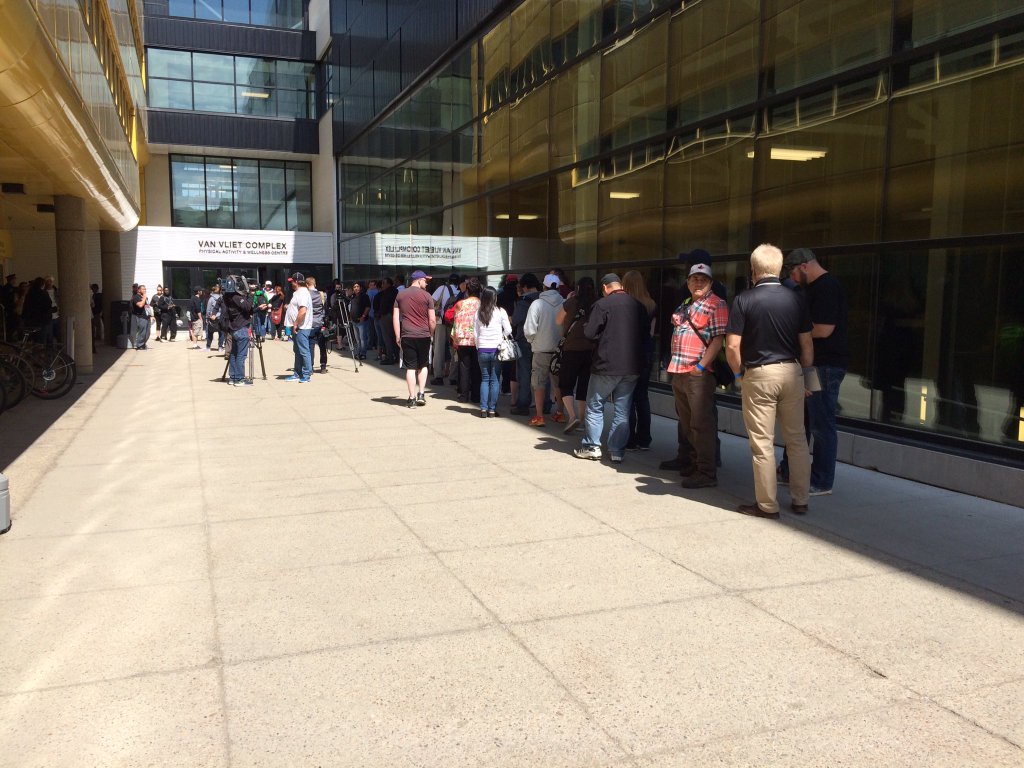 By 1 p.m. Wednesday, a long line had appeared outside the Butterdome, and continued to grow by the minute.