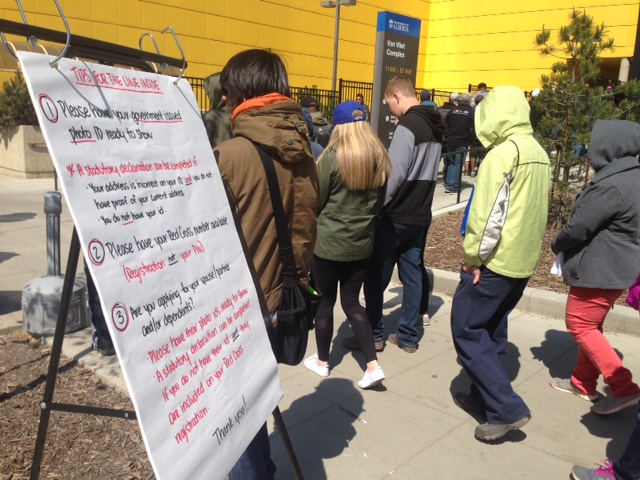 Long lineups were already visible at NAIT Thursday once the new distribution location was announced.