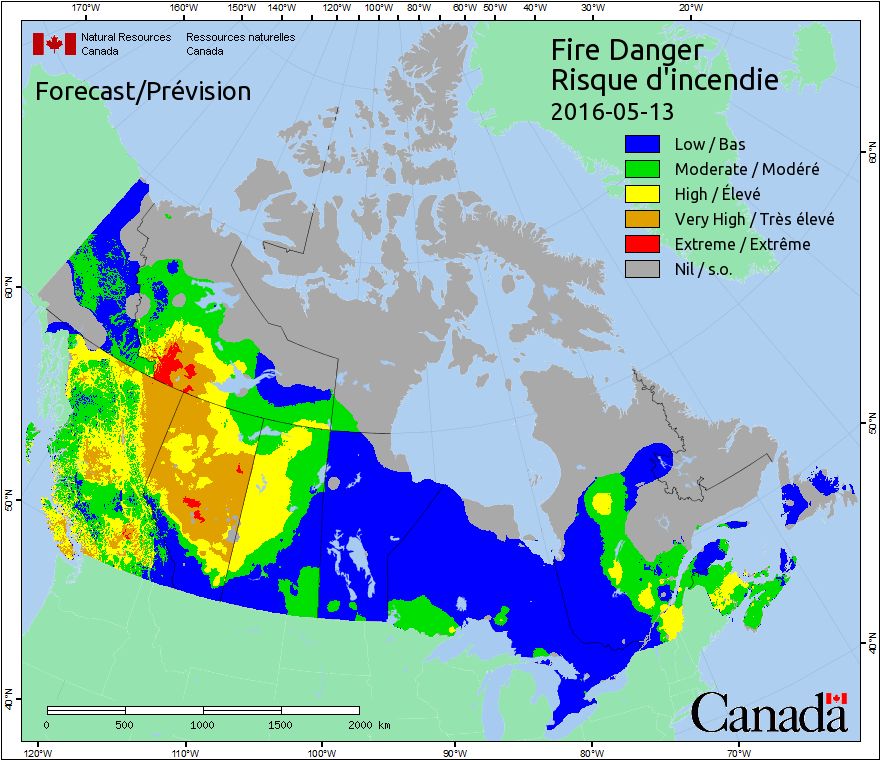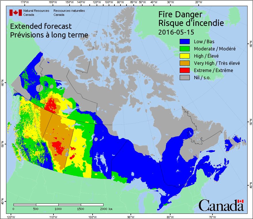 “It’s not only the fine fuel – those needles and branches that are already quite dry,” Bruce Macnab, head of the Wildland Fire Information System, explained. “But because of relatively low rain fall, some of the larger dead wood for example is quite dry as well and quite flammable.”