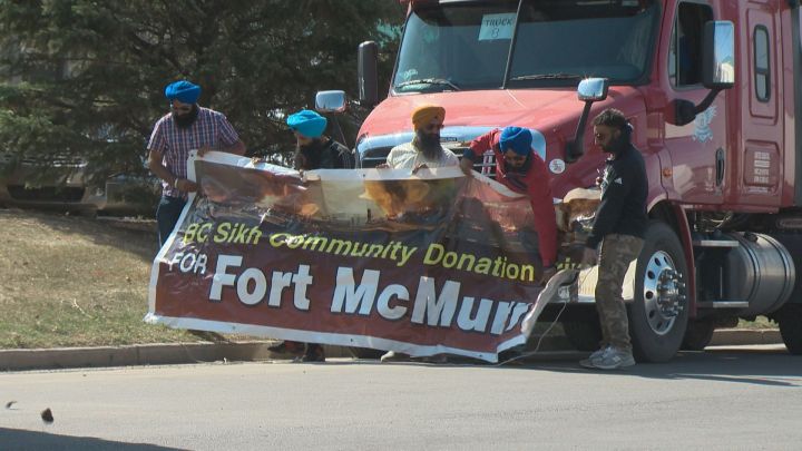 EDMONTON – Five semi trucks carrying donated goods to help Fort McMurray wildfire evacuees arrived in Alberta’s capital Monday afternoon thanks to the efforts of B.C.’s Sikh community.