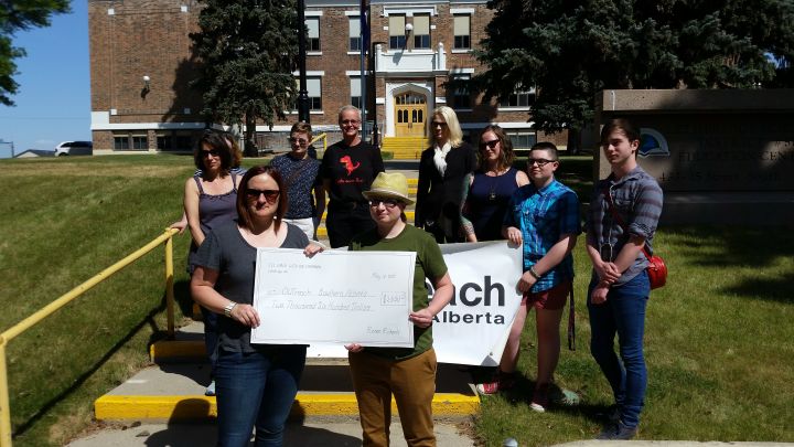 On Tuesday afternoon, Richards extended a hand full of money that had been collected in the community, and passed it over to OUTreach Southern Alberta. In total, $2,600 was donated to the organization that provides education and support for the LGBTQ+ community.