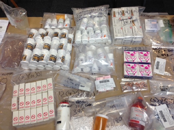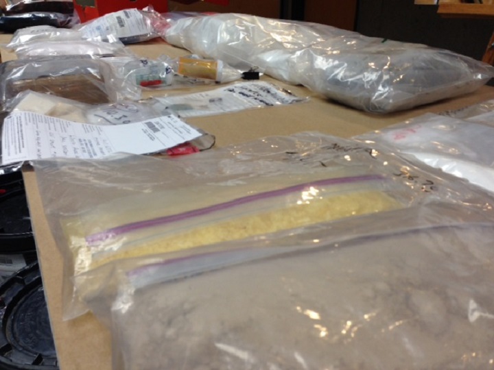 Today, Delta police showed off some of the items seized from the large fentanyl bust which included 12 kilograms of cocaine, 4.5 kilograms of heroin, $100,000 worth of pills, including oxycontin, and 125 grams of pure fentanyl.