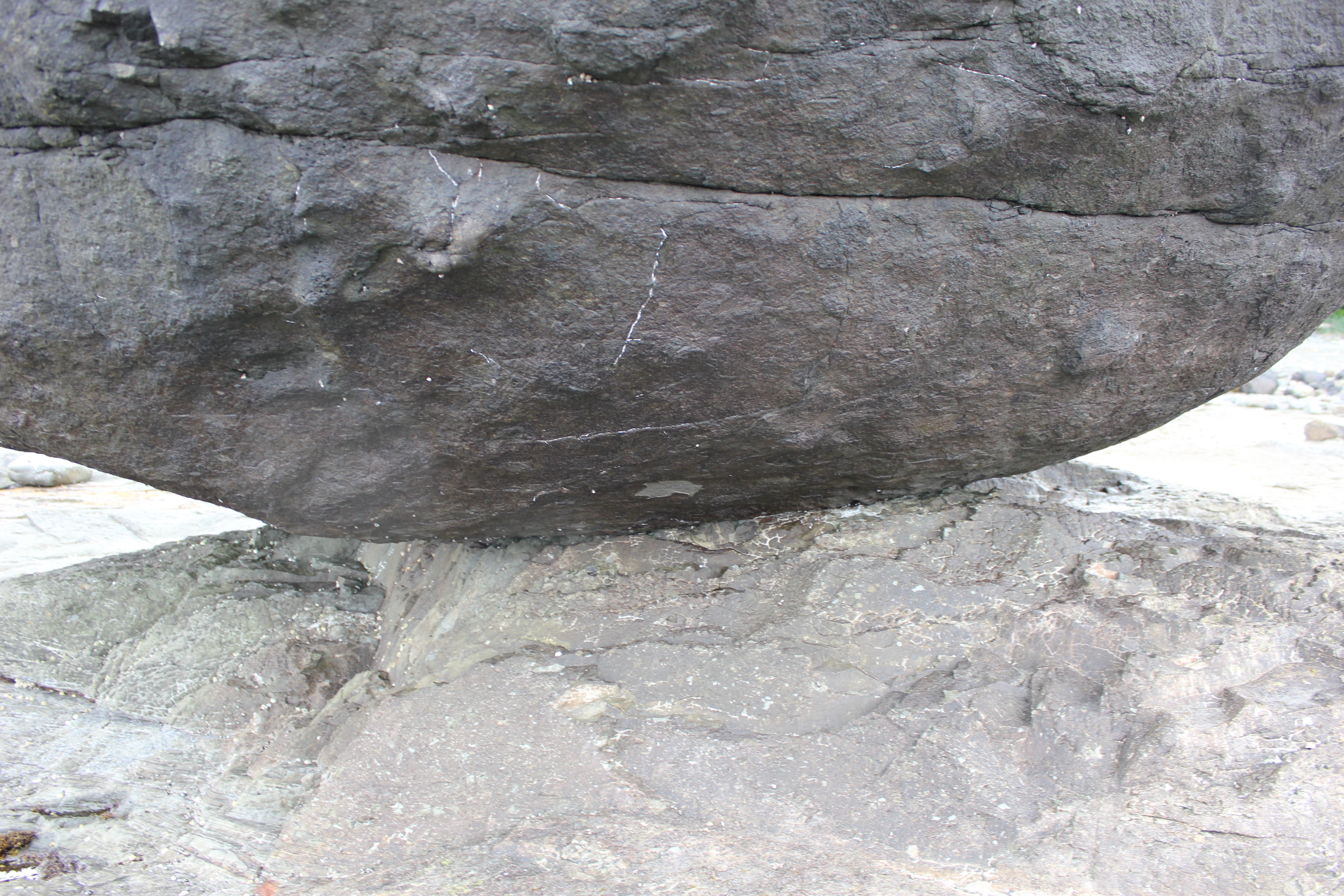 Dan Gibson, associate professor of Structural Geology at the Department of Earth Sciences at Simon Fraser University, says the boulder’s centre of gravity is centred exactly over the point of contact with the underlying rock, creating the seemingly unbreakable bond.