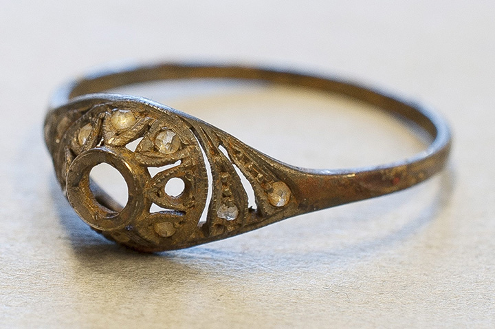 Wrapped in a thin canvas, the jewelry was tightly packed under a false base made from a metal tin that bears the name of a Polish chocolate maker “Goplana” and eventually rusted out.