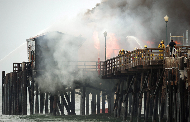 Fire engines initially pumped water out to the firefighters through the pier’s fire protection standpipe but it failed and they were forced to lay more than 1,500 feet of fire hose, said Orange County Fire Authority Capt. Steve Concialdi.