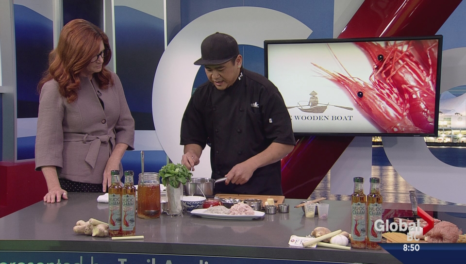 Chef Thompson Tran from the Wooden Boat Food Company uses freshly caught BC spot prawns as the centrepiece of his brown rice with vermicelli and Nuoc Cham recipe.