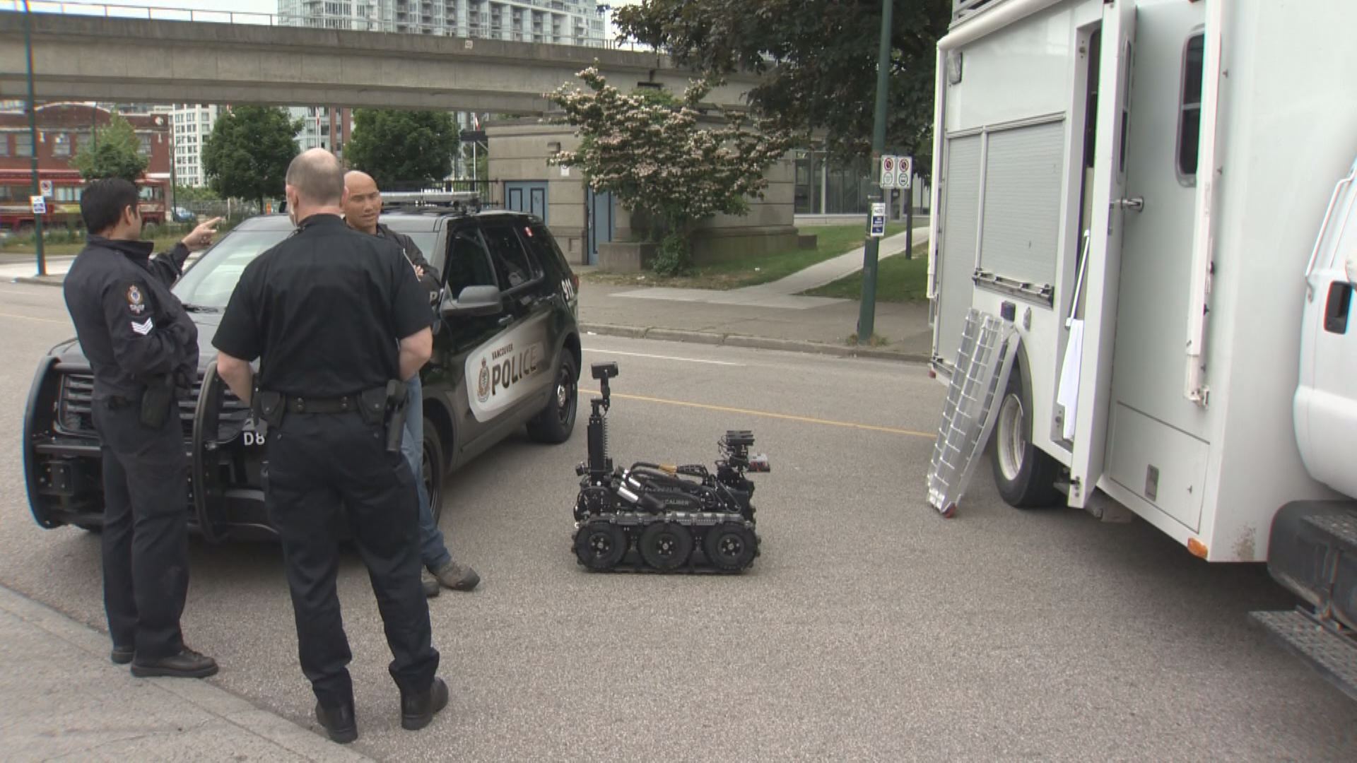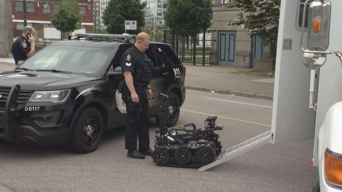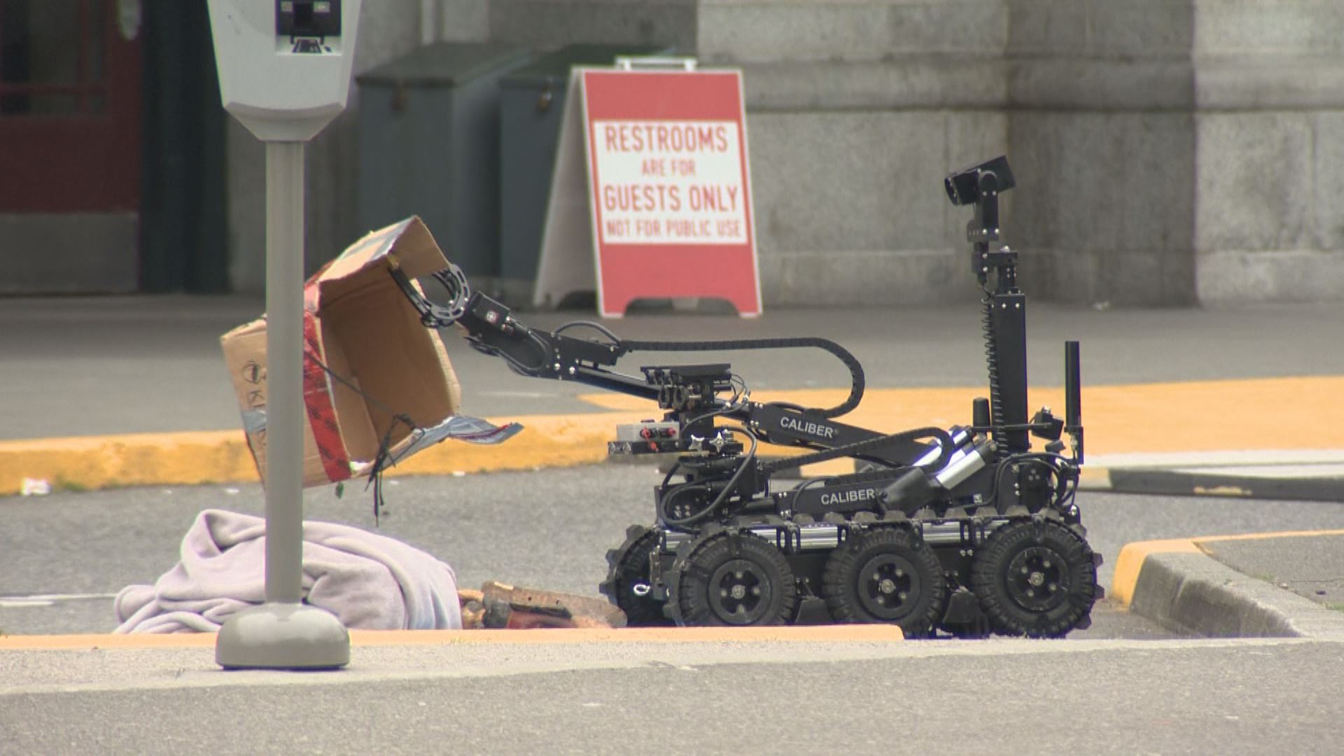 The Vancouver Police Department Bomb Squad robot was called in to deal with a suspicious package at a transportation hub this morning.