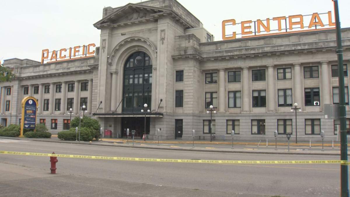 The item, possibly a rolled up sleeping bag, was found at the Pacific Central Train Station.