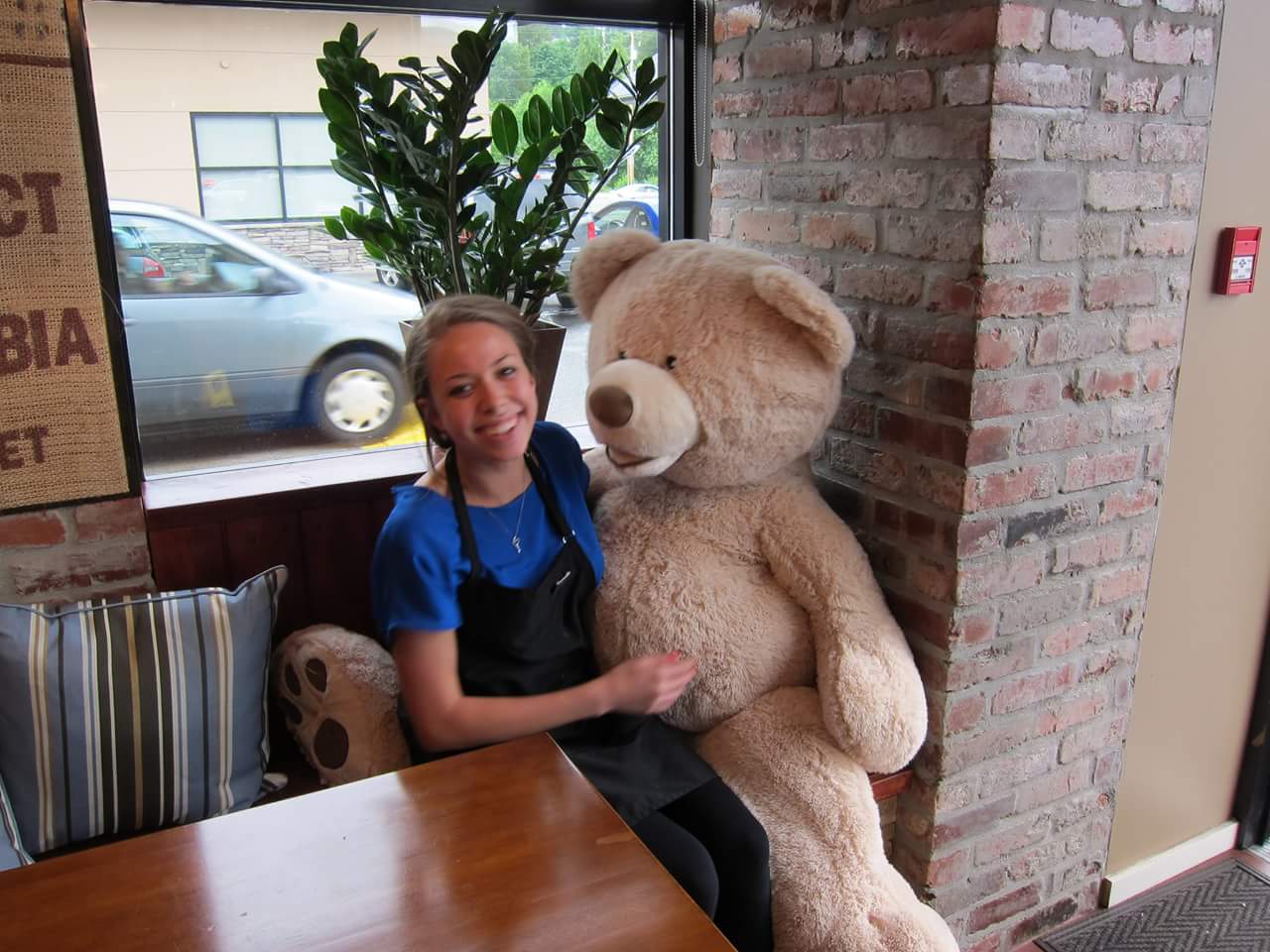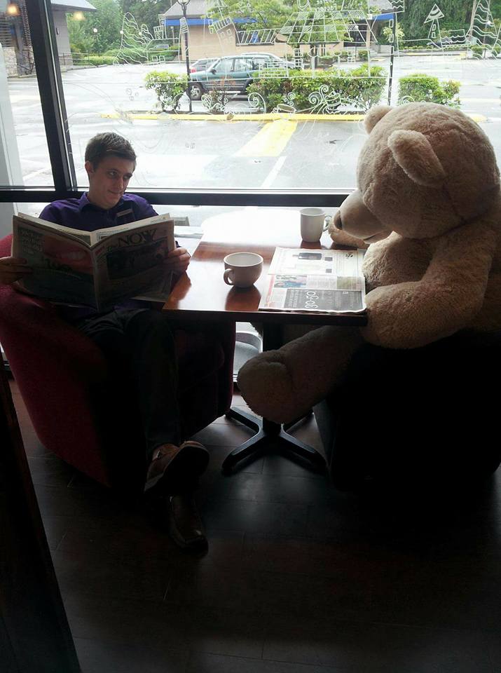 Staff and customers of a Coquitlam coffee shop were shocked last Saturday to discover their giant teddy bear – the mascot of the cafe – had been taken.