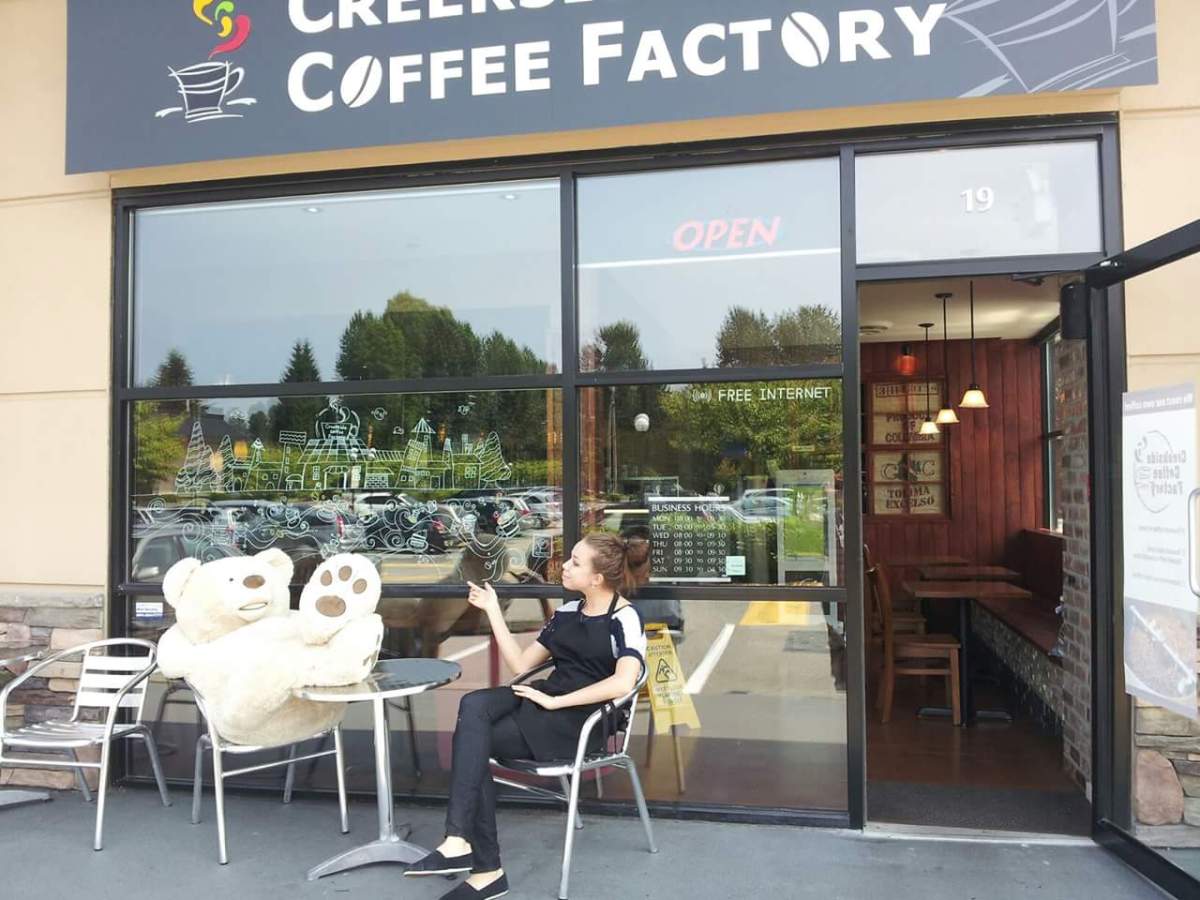 April Shim, who has been working at Creekside Coffee Factory, located at 19-2773 Barnet Highway for over a year, said it was during the shift change on Saturday that a man walked in, grabbed the bear and walked out.