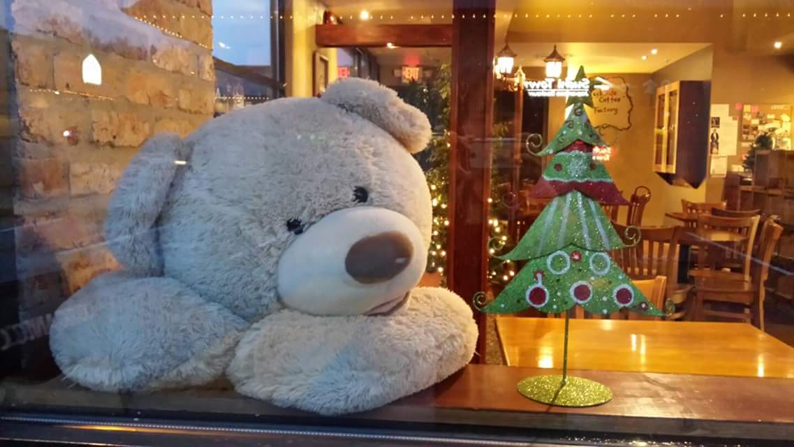UPDATE: Bearamel was safely returned yesterday to Creekside Coffee Factory by the person who originally took him.