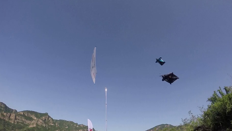 World famous base-jumper and wingsuit pilot Jeb Corliss successfully performed the “Human Arrow” stunt at the Great Wall of China on Sunday morning.
