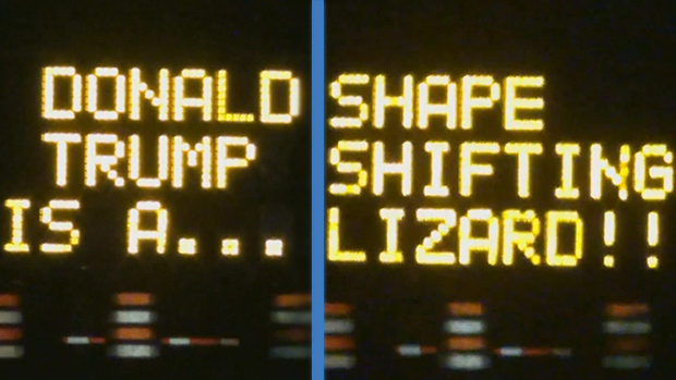 The Texas Department of Transportation is searching for answers after a trio of electronic road signs were hacked in less than 48 hours, including having one sign’s scrolling message changed to read “Donald Trump Is A Shape Shifting Lizard.”