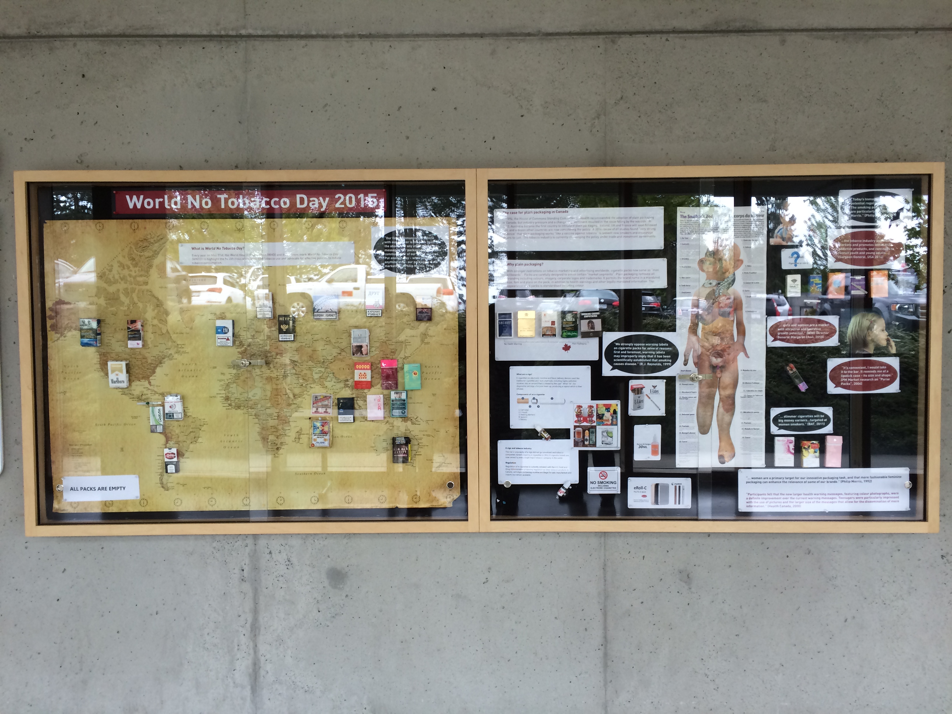 Lee and her research team have set up an informative display at SFU showcasing how cigarette packaging plays a key role in the marketing of tobacco products.