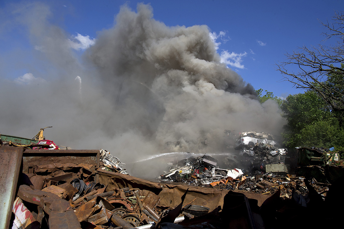 Vedvig says the scrap steel pile stands about three stories tall and contains between 20 to 30 semitrailer loads of material.