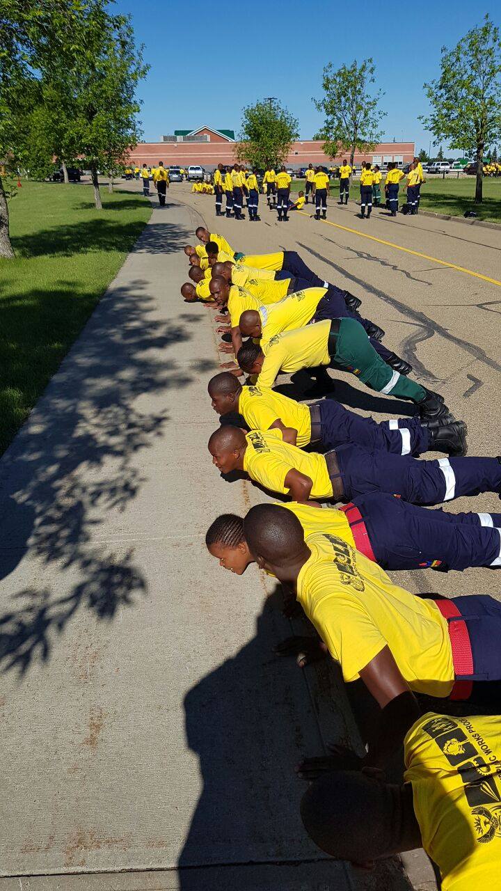 They also did some fitness exercises and an equipment check. The firefighters headed to Fort McMurray on Wednesday.