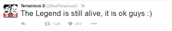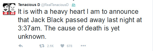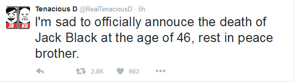 Actor Jack Black is alive and well despite a series of tweets from his band Tenacious D’s Twitter account which announced his passing early Sunday morning.