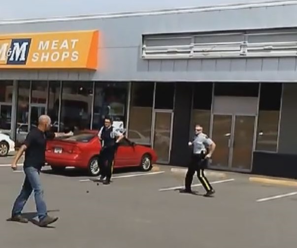 According to the RCMP, the two officers were making routine patrols of the bus loop on Tranquille Road and Sydney Avenue at 10:30 a.m. when they were notified two men were drinking at the bus stop. The police officers approached the two men to advise them drinking in public was illegal and while one of the men cooperated, the other became belligerent and started yelling.