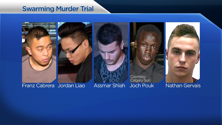 Shlah, Franz Cabrera, Jordan Liao and Joch Pouk are all on trial, accused of the second-degree murder of the 18-year-old. A fifth man – Nathan Gervais – is charged with first-degree murder. He went missing weeks before the trial and a warrant remains out for his arrest.