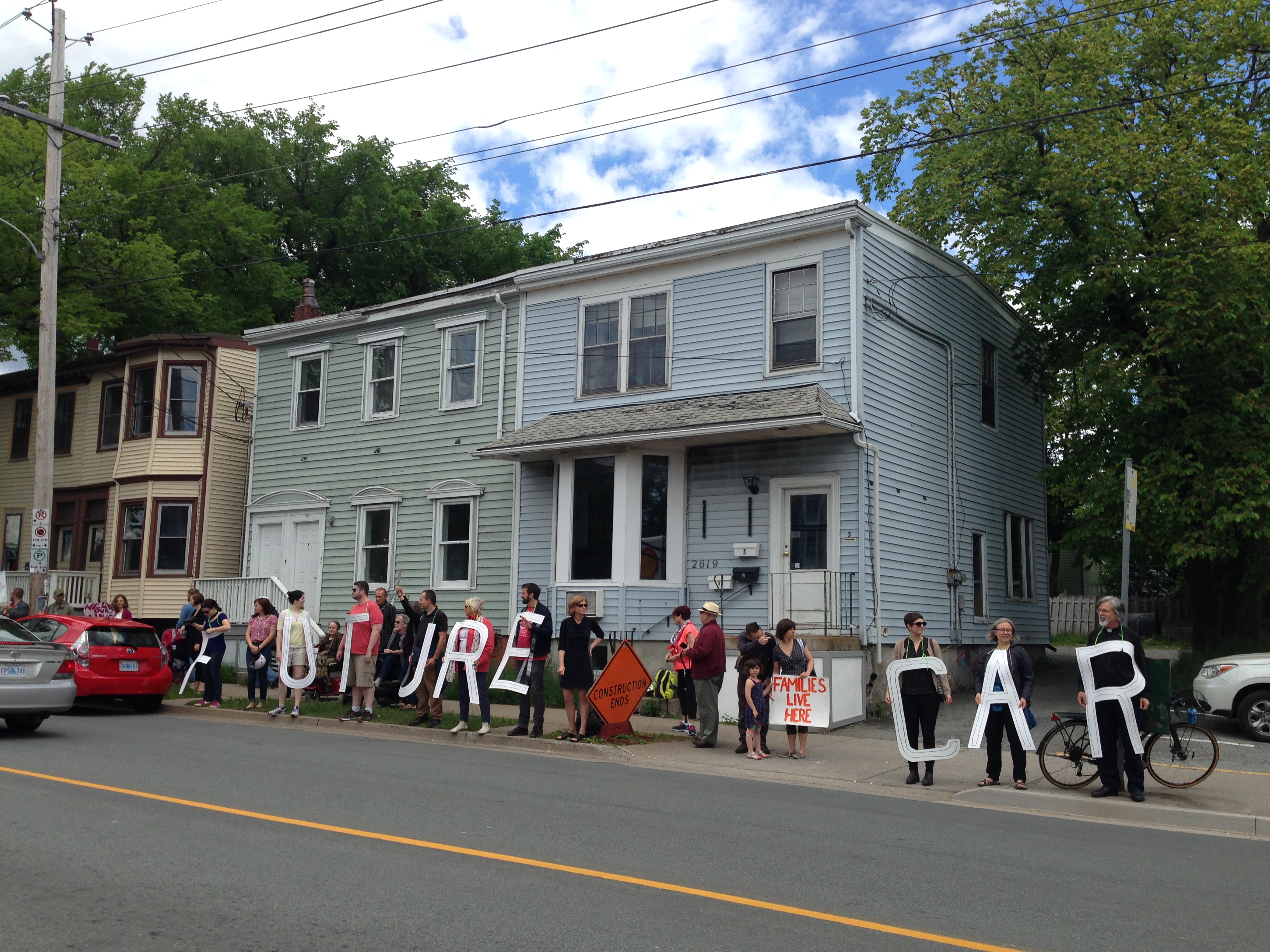 Neighbours and community members held a show of solidarity on Saturday in a bid to save more than a dozen north end Halifax homes as the wrecking ball draws near.