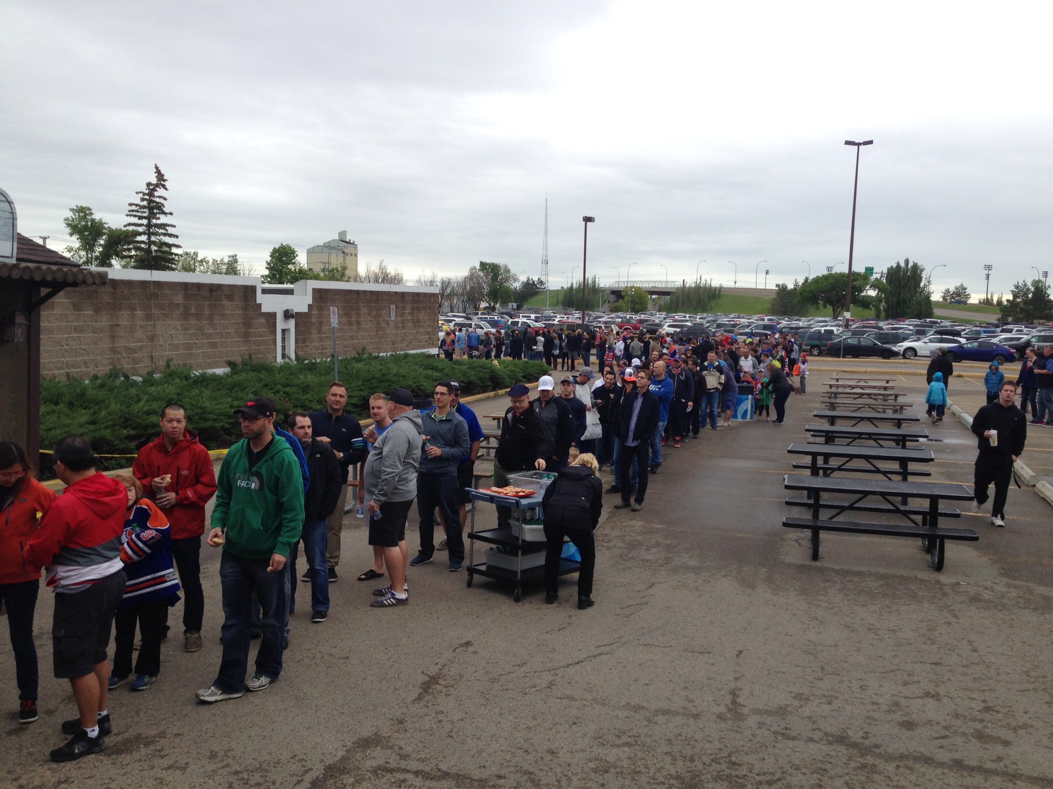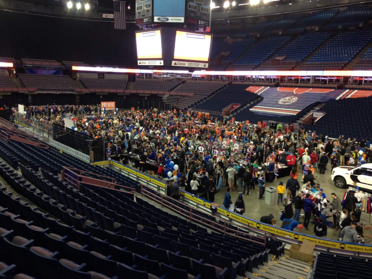 Thousands of Edmonton Oilers fans lined up for hours ahead of the Oilers Farewell Season Clearout Sale at Rexall Place Sunday.