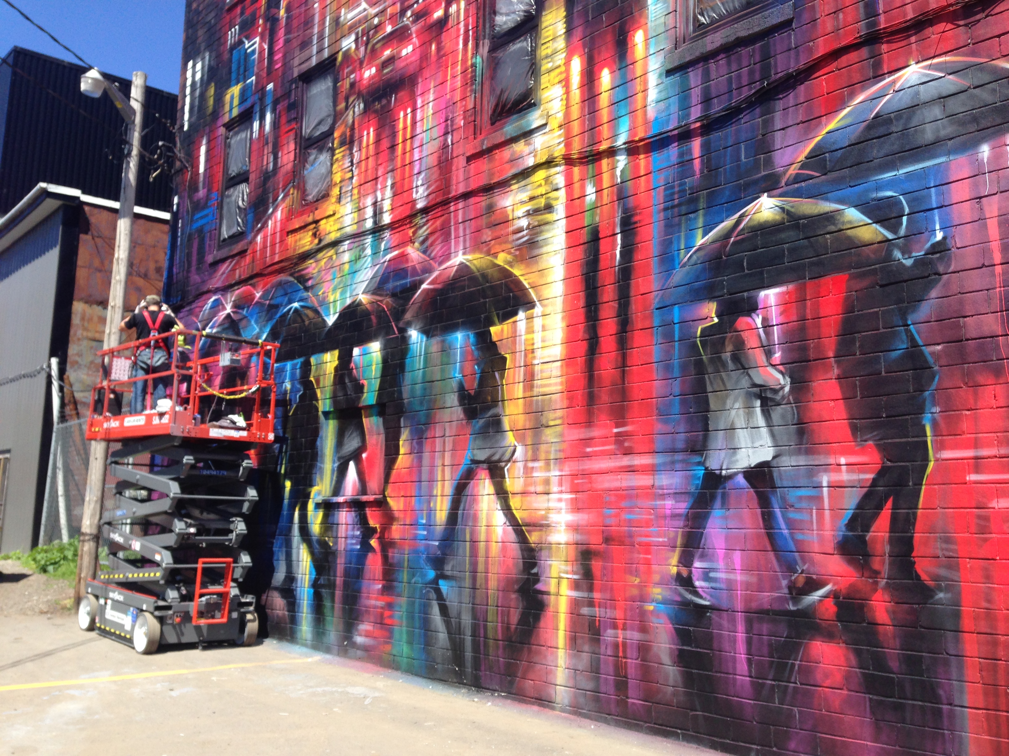 Ironically, his mural depicting a rain soaked street in Tokyo was one of the only murals not impacted by the rain.