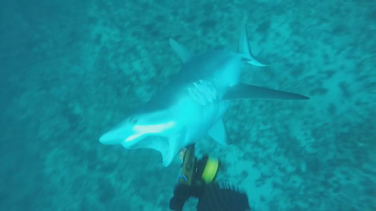“They were being too curious around us,” Vale said. “I dove down and the shark met me down on the bottom and came too close for comfort. So I gave him a poke.”