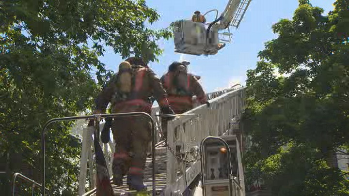 A fire tore through two connected apartment buildings in Outremont Friday afternoon, destroying almost all the property inside, from the cellar to the roof.