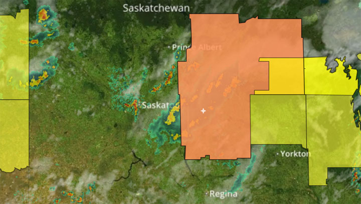 To report severe weather, send an email to storm@ec.gc.ca or tweet reports to #SKStorm.